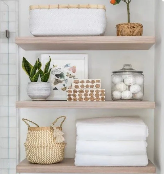 Opt for open shelves instead of cabinets to make your laundry room appear more spacious. Shelves not only provide storage but also offer an opportunity to showcase decorative items like candles, faux flowers, or real ones if you prefer. Just make sure the materials you choose can withstand the heat generated by the dryer.