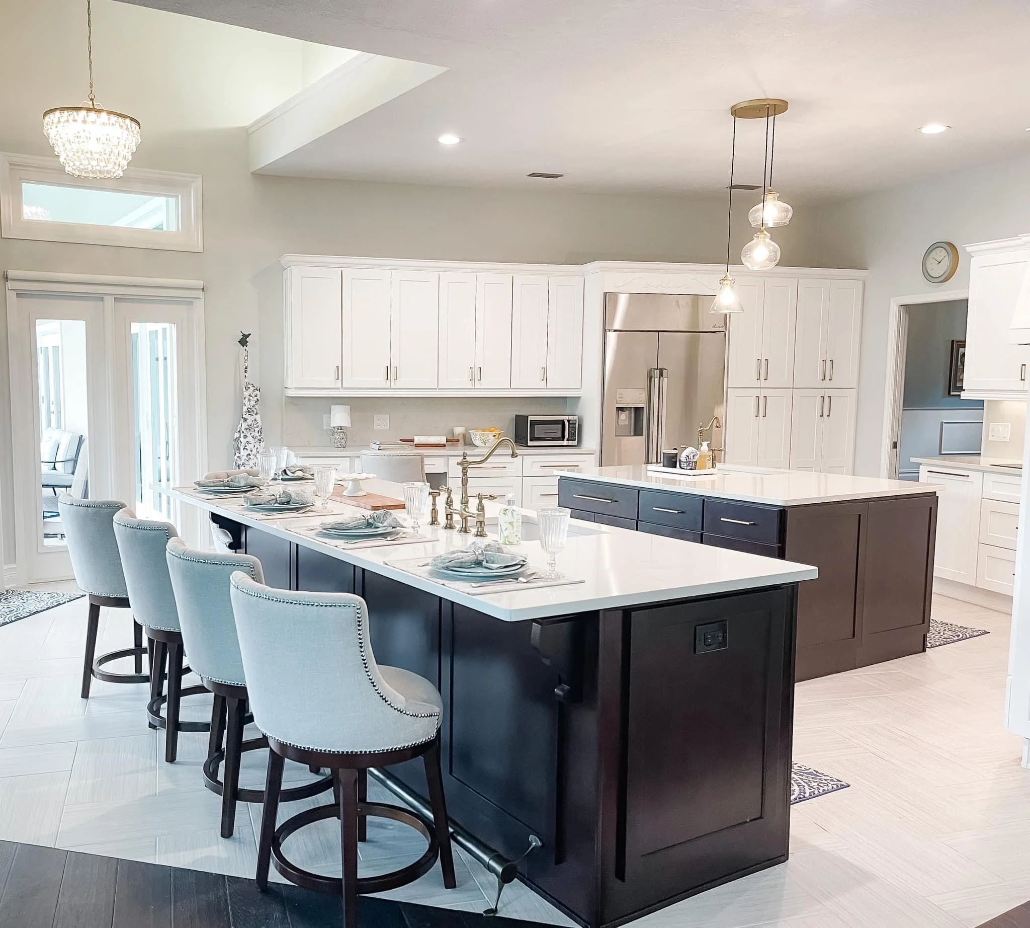 1984 CALLING! This was 4 different rooms. I redesigned this to become one large open space which opened to an amazing pool area. The Island is 137" long and double cabinets deep- There are double wine fridges and a HIDDEN butlers pantry complete with copper sink and second dishwasher. The entire space was designed. The project SOLD in one day and broke the sales record for the neighborhood by over 25%! Long before that was the Norm. This is truly a great house.